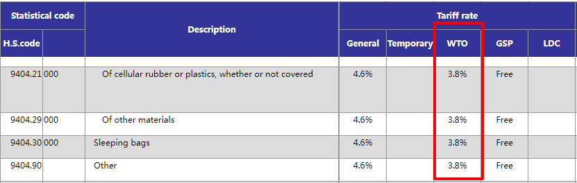 而印度、孟加拉、韩国等市场则属于《亚太贸易协定》,税率同样可以在这个网站查询到。